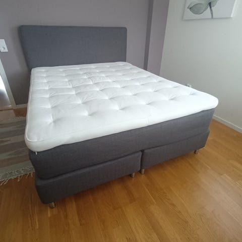 Dubbelsäng + sänggaveln + bäddmadrass från IKEA i storlek 160x200.