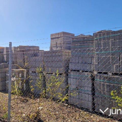 Stenar i olika storlek och form som använts i trädgård.