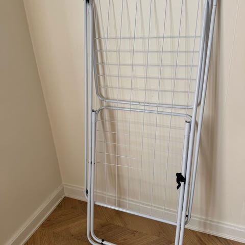 Praktisk hopfällbar torkställning i metall som tar liten plats när den inte används.