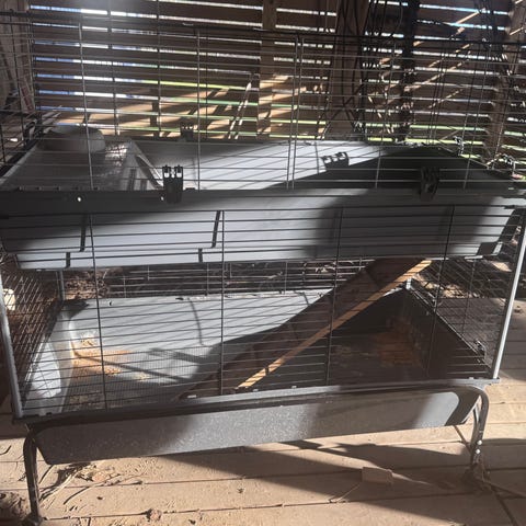 Kaninbur för utomhusbruk. Isolerad med två våningar. Använd i fyra år till två kaniner. Stått under tak. Hämtas på Lorensberg, Karlstad