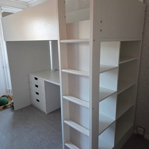 IKEA loftsäng med skrivbord och förvaring vit