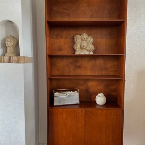 50-tals teak hylla, Behöver lite omvårdnad men annars fin och fungerar bra.