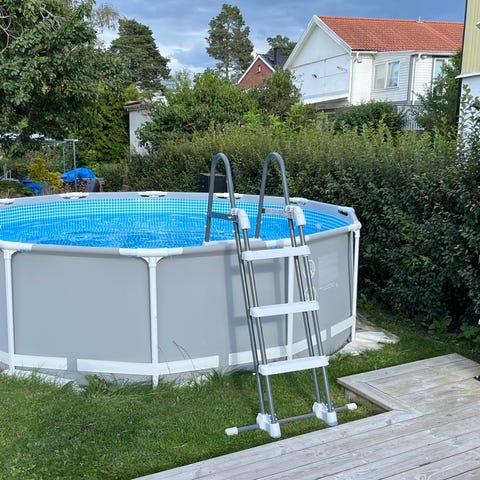 Fin och bra pool med pump använd två säsonger. Markskydd, poolskydd skickas med. Det finns även rengöringsborste och håvar som medföljer så allt är komplett att sättas upp. Nypris ca 2000kr