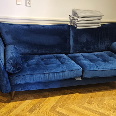 Svart sammet soffa