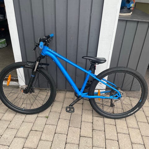 Blå Crescent barncykel 24”. Cykeln har tre växlar och hand och fotbroms.