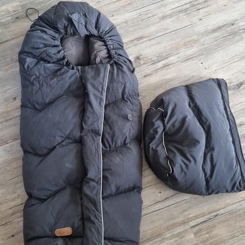 Svart åkpåse från Bugaboo till barnvagn, med öppningar för sele och mjuk insida.