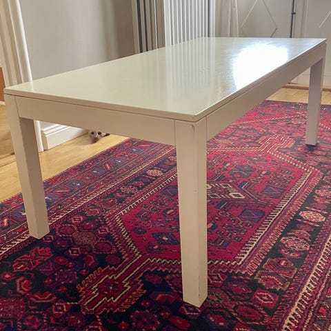 Fint och stabilt soffbord från IKEA i ljus träfärg. Bordet är 68,5 cm brett och 47 cm högt, med naturliga bruksspår som syns på bilderna men i gott bruksskick. Perfekt som vardagsrumsbord med rejäl känsla och enkel, tidlös design.