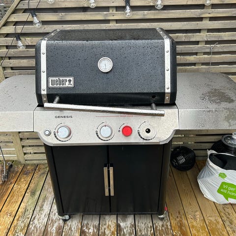 Broil King gasolgrill med flera brännare och stora sidobord i metall. Lock med handtag, grillgaller i metall och förvaringshylla undertill. Ingår väderskydd.