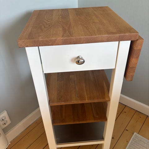 Köksö i fint skick med både hyllor och lådor för förvaring! Går utmärkt att sitta vid på ett par barstolar! Är på hjul så väldigt flexibel!