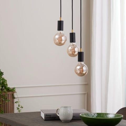 Säljer en svart taklampa med tre spottar.