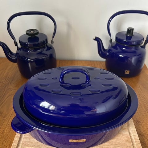 Vacker blå emaljerad långpanna Kockums perfekt för brödbak & långkok! 4 liter