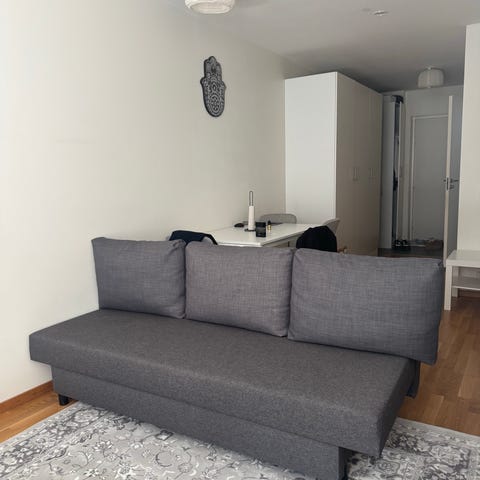 Fin och praktisk bäddsoffa i bra skick med förvaring. Bäddmadrass medföljer.