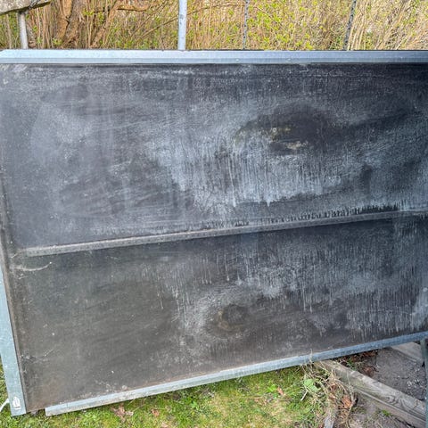 Fyra absorbatorplåtar 105x200 cm för att bygga effektiva och billiga solfångare säljes. Kopparrör 10mm i serpentin är lasersvetsade på aluminiumplåt med högabsorberande selektivt skikt på framsidan. För självbygge av solfångare. Dessa har värmt 1000 liter ackumulatortank. 250 kr styck.