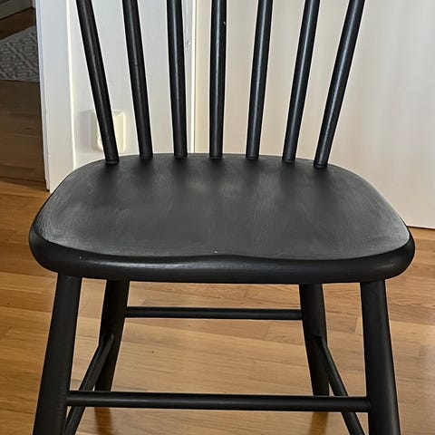 Säljer fem stycken svarta Wood h17 pinnstolar. Inköpta 2020 på Royal Design. Färgskav här och var.