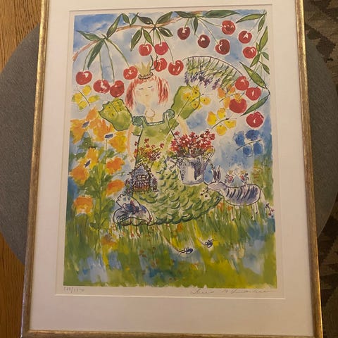 Grafik "Flicka med frukter" numrerad 102/115 med ram