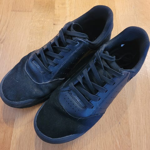 Fizik MTB-cykelskor i stl 45, gröna med svart tåskydd. Har boa , rem över foten och sula med SPD-klossar ingår och grovt mönster.