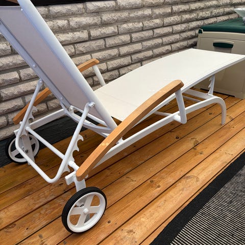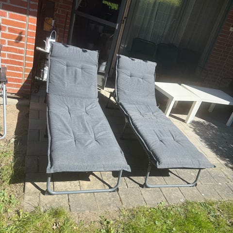 Brafab solstolar (2st) och stolar (6st) för uteplatsen i svart metall med grå sits och rygg. Bekväma att sitta och ligga i, med armstöd och lättskött material.