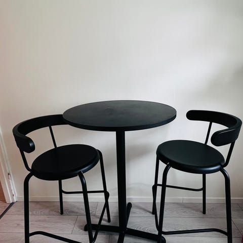 Säljer ett jättefint barbord med två stolar 120x60cm.