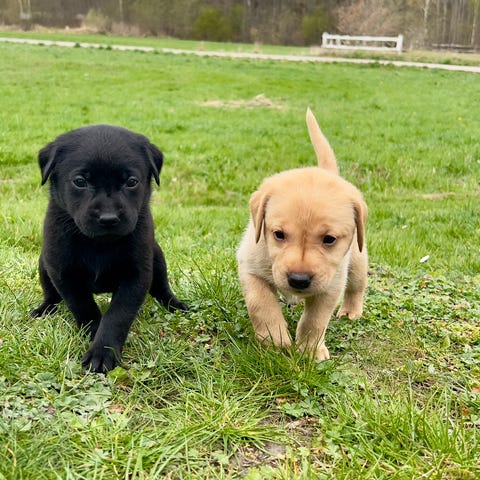 Finns 2 hanar kvar att välja mellan i färgen gul och svart. De är efter trevliga sociala och friska föräldrar. Mamman till valparna är en brun labrador och pappa är en gul labrador.