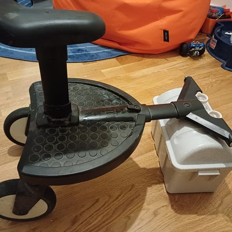 Vi har haft ståbrädan på en Cruz V2 2025 vagn. Ovärderligt tillbehör för storasyskonet! Fälls upp och ner med en enkel knapptryckning, och sitter uppe utan jobbiga fästremmar. Rejäla gummerad hjul, svängbara 360°. Lätt att fästa och ta loss från vagnen, men vagnen fälls även ihop med ståbrädan på chassit.