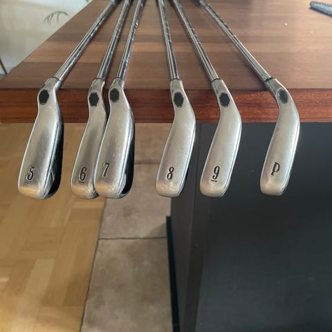 Callaway RAZR XF-järn 5–9 säljes tillsammans med en Callaway X Hot-driver och en Mizuno FW3. Greppen på järnsetet är nya och klubborna är mycket förlåtande.