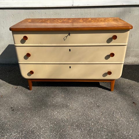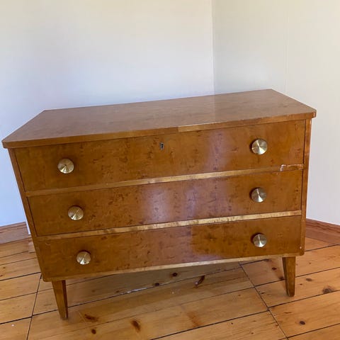 Svensk byrå i björk (eller björkfaner) från 1930-, 40- eller 50-talet, ett klassiskt exempel på svensk modernism eller "funkis".