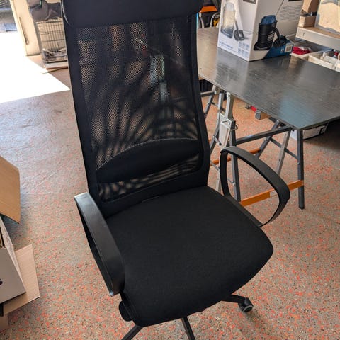 Kontorsstol mycket lite använd. Mycket bekväm och går att luta bakåt.