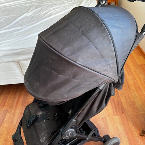 Baby Jogger city tour 2 sulkyvagn i grått med svart chassi. Har sele i sittdelen, liggläge, varukorg under och svängbara framhjul.