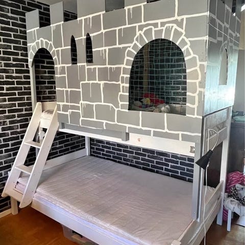 en rolig och unik barnsäng 1 år gammal men vi ska flytta till mindre så kommer inte kunna ha kvar sängen.