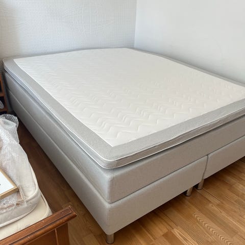 Komplett kvalitets kontinentalsäng 180x200 i fint skick med gavel, inga skador eller skavanker. Köpt från Svenska Hem. Bäddmadrassen ingår inte i köpet men kan medföljas om man vill
