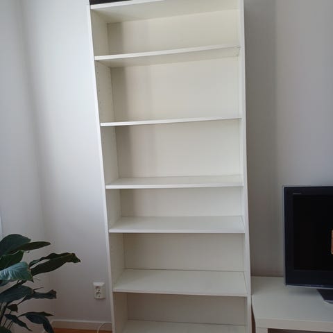 Pga flytt säljs denna smala vita BILLY-bokhylla från IKEA. Inköpt för flera år sedan. Ordinarie pris 499kr.