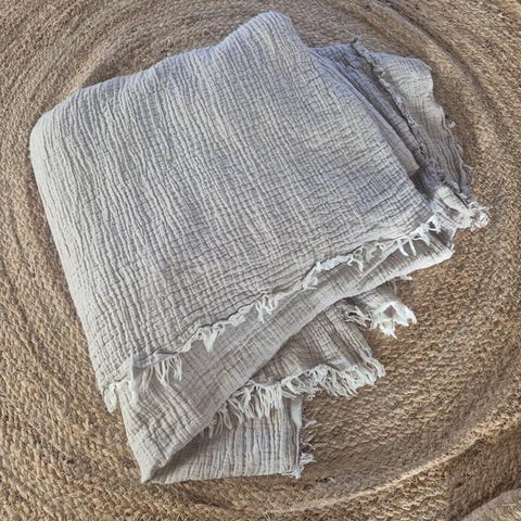 Överkast från Värnamo Sängkläder i blått med ljus insida. Quiltat med enkla sömmar och mjuk kant runtom.