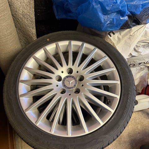 Dessa sommardäck på fälg är original från Mercedes till en GLC. Det finns ca 3-4 mm kvar på däcken. Yokohama Advan sport 235/50R18 103V