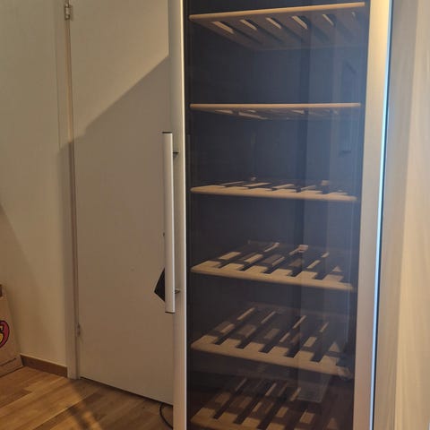 Vinkyl från Geapp , modell GEA18ESS, med glasdörr och digital temperaturdisplay.