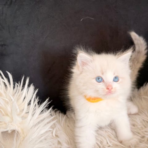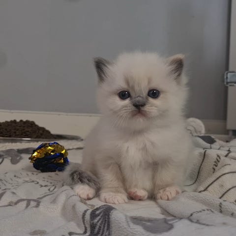 Nu är det bara lilla Athos kvar - en mysig, social, nyfiken och charmig liten kille av rasen Helig Birma. Han är nu 8 veckor gammal och kommer vara redo att flytta i slutet av maj.