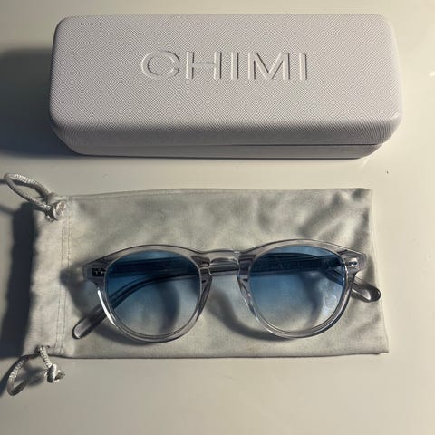 Chimi solglasögon i unisexmodell med fyrkantig båge och bruntonade glas. Levereras i hårt etui med mjuk påse inuti.