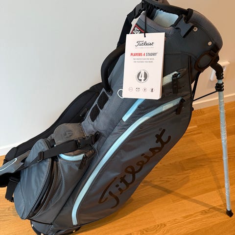 Titleist bärbag stadry 5, svart med röda detaljer och flera fickor på sidorna. Har bärrem, stativben och delat toppfack för klubborna. Inköpt i vintras. Aldrig använd. Hämtas i Norrtälje. Först till kvarn!!!!!