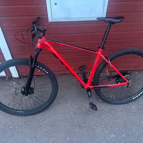 Cykeln är i gott skick med normalt ytslitage. Fungerar felfritt — växlar, bromsar och gaffel känns alla bra.
