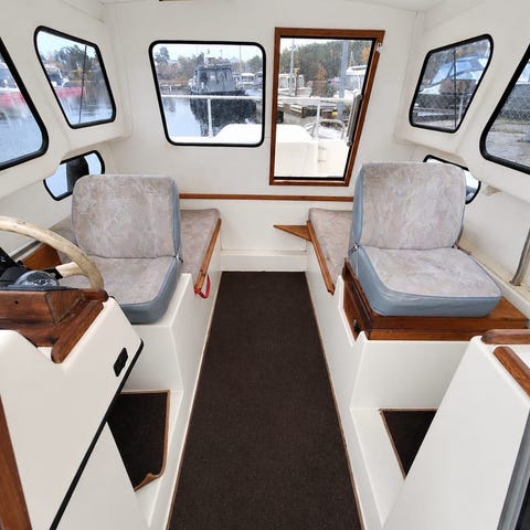 Vit styrpulpet och sittbänk i mitten. Jockeysäte till RIB båt. Obs endast säte och rattstyrning