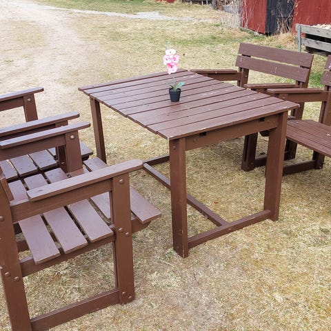 Gamla trädgårdsmöbler. Slitna och behöver lite kärlek/omvårdnad. Bortskänkes. Om ingen vill ha, blir det tippen. Hämtas i Häckenäs nära Borghamn.