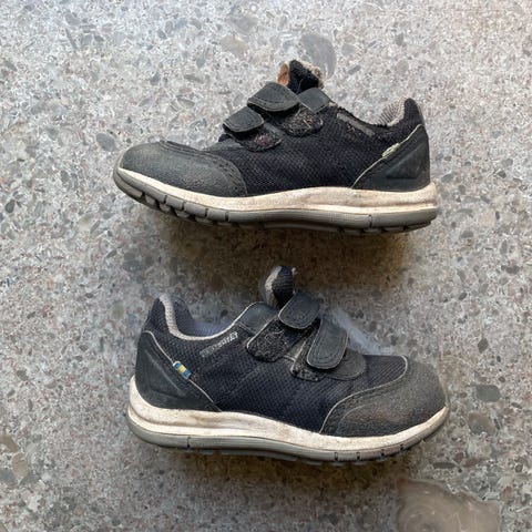 Plommonlila vattentäta sneakers (Halland) från Kavat i stl 22. Väl använda av två barn (se bilder) men har minst en säsong till i sig!