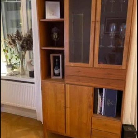 Till bokhyllan finns ett tillhörande sidoskåp.