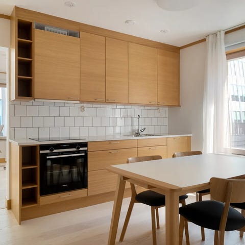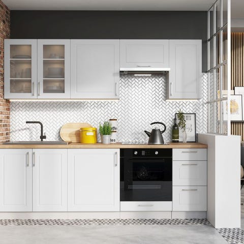 Ljust och modernt kök med stilren design och naturlig träfinish 260cm. Perfekt för både små och stora utrymmen .Ett prisvärt och funktionellt kök helt ny i kartongen omonterat.