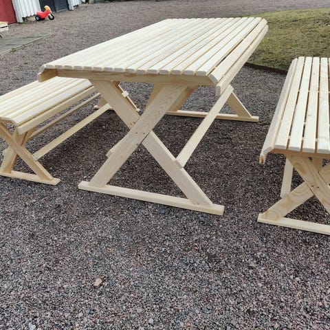Vitt fällbart bord med bänk