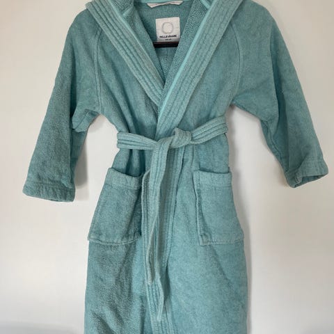 Marinblå morgonrock/badrock från KappAhl, strl 158/164. Bomull. Huva och knytband och två rejäla fickor.