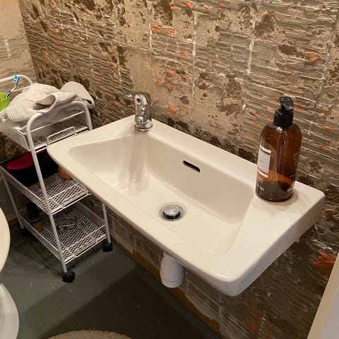 Gustavsberg. Vitt tvättställ med pelare och ettgreppsblandare.