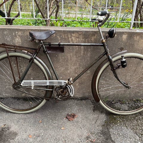 Köpt mitten åttiotal av cykelmontören Batista Simonato, Några år senare bad jag honom bygga om cykeln för mer upprät sittställning och med däck med slang, för lite mjukare färd. Resultatet blev denna vackra cykel!