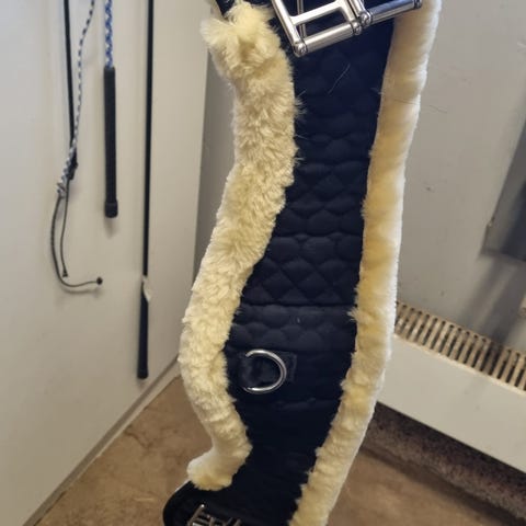 Sadelgjord i läder med magplatta med fårskinn