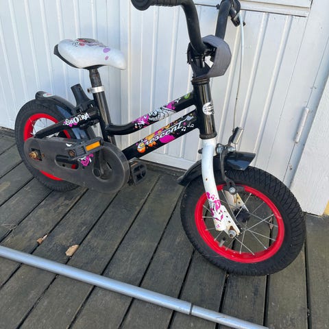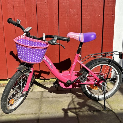 Barncykel. Crescent svart med rosa stjärnor. Passar barn i åldern 5-7 år. Pris prutat och klart.