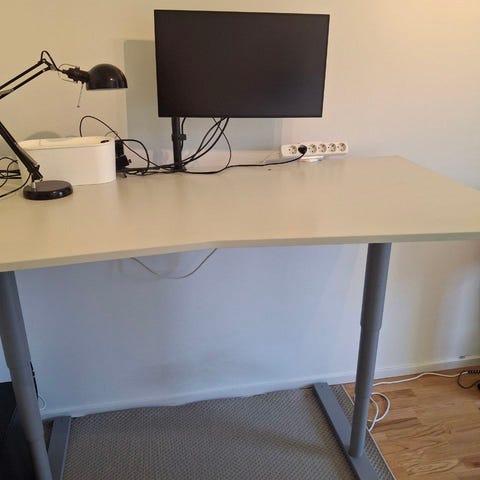 Skrivbordet är i bra skick och fungerar som det ska. Den medföljande adaptern är tyvärr trasig, men jag kan visa att bordet fungerar med en annan adapter. Det går enkelt att köpa en ny adapter och använda som vanligt.